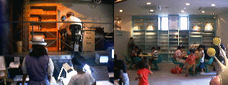 地下にアニメ工房というのがあって、写真のように手塚治虫氏の 仕事部屋の再現を見ながら子供たちが簡単なアニメを作っていたり、 2階の手塚治虫ライブラリー(手塚マンガを自由に閲覧出来る)で 子供と一緒に親までもが熱心に手塚マンガを見入っている様子は、 とても印象的でした。
