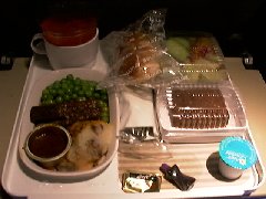 日本時間の午後6時にはピーナッツとドリンク、 午後7時には夕食にありつけました。