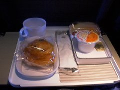 機内での2度の電池交換を経て、気が付くと朝食の時間に...