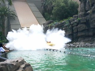 これが「ジュラシックパーク」で、基本的にはどこの遊園地にでもありそうな やたらと水をかぶるアレと同じでした。 アレ+恐竜が色々と脅かしてくれるって感じでしょうか。
